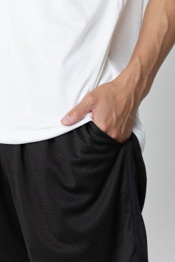 トレーニングや移動の際に重宝するアイテムです。 素材はポリエステル100%のメッシュ生地で、優れた通気性により快適な着用感を実現。アクティブなシーンでの使用を想定した機能性と、日常のカジュアルウェアとしての汎用性を兼ね備えています。