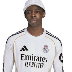 チームの礎。改築工事で新しく生まれ変わったベルナベウスタジアムを記念する、レアル・マドリードのホームユニフォーム。数々の栄光を築いてきた過去のユニフォームへのオマージュを込めて、それらの配色、風合い、シェイプを採用している。25/26シーズンに伝説的ホームスタジアムで選手が着用するためにデザインされたこのユニフォームには、選手の身体を快適にサポートする、優れた吸湿性を発揮するAEROREADYを使用。クラブのプライドを示す刺しゅうエンブレム入り。