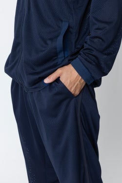 トレーニングや移動の際に重宝するアイテムです。 素材はポリエステル100%のメッシュ生地で、優れた通気性により快適な着用感を実現。アクティブなシーンでの使用を想定した機能性と、日常のカジュアルウェアとしての汎用性を兼ね備えています。