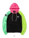 フラッシュカラーのプルオーバーフーディー。
